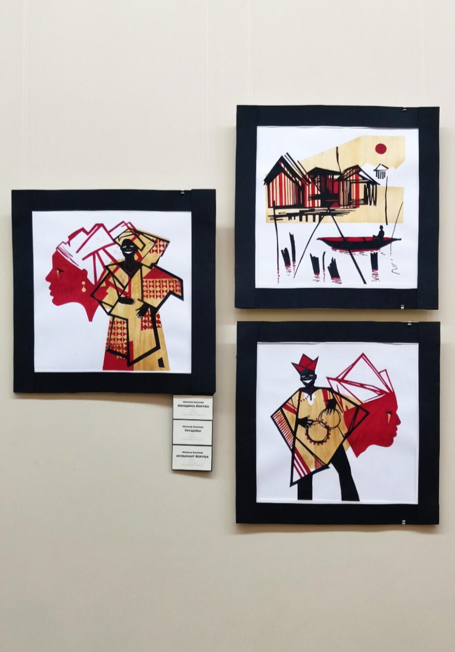 Участвовала в выставке с линогравюрами: триптих "Женщина Йоруба", "Трущобы", "Музыкант Йоруба"